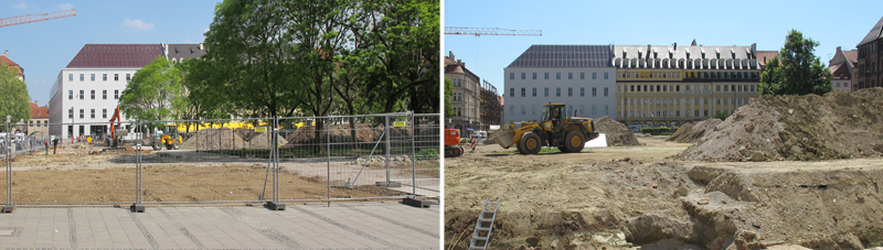 Der Architekt Stephan Braunfels sieht die Grabungen als “Vorwand für vollendete Untaten” und äußerte: “Der Platz hatte endlich und erstmals nach dem Zweiten Weltkrieg wieder ein Gesicht – alles vorbei” (Isfort, Volker, Lärm in der Oase der Ruhe, in abendzeitung-muenchen-.de 10.6.2011).